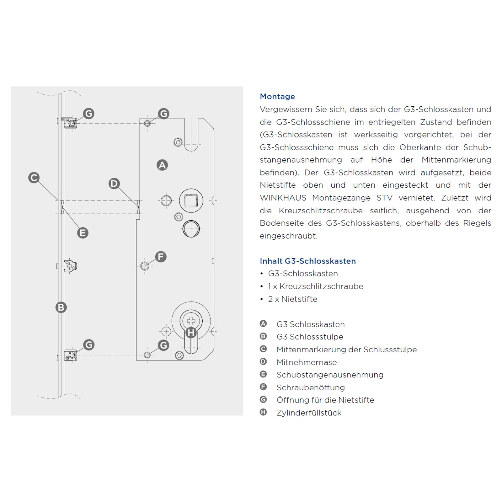 - 1x Winkhaus Schlosskasten T-G3 SK TP3 50 92/8 BL